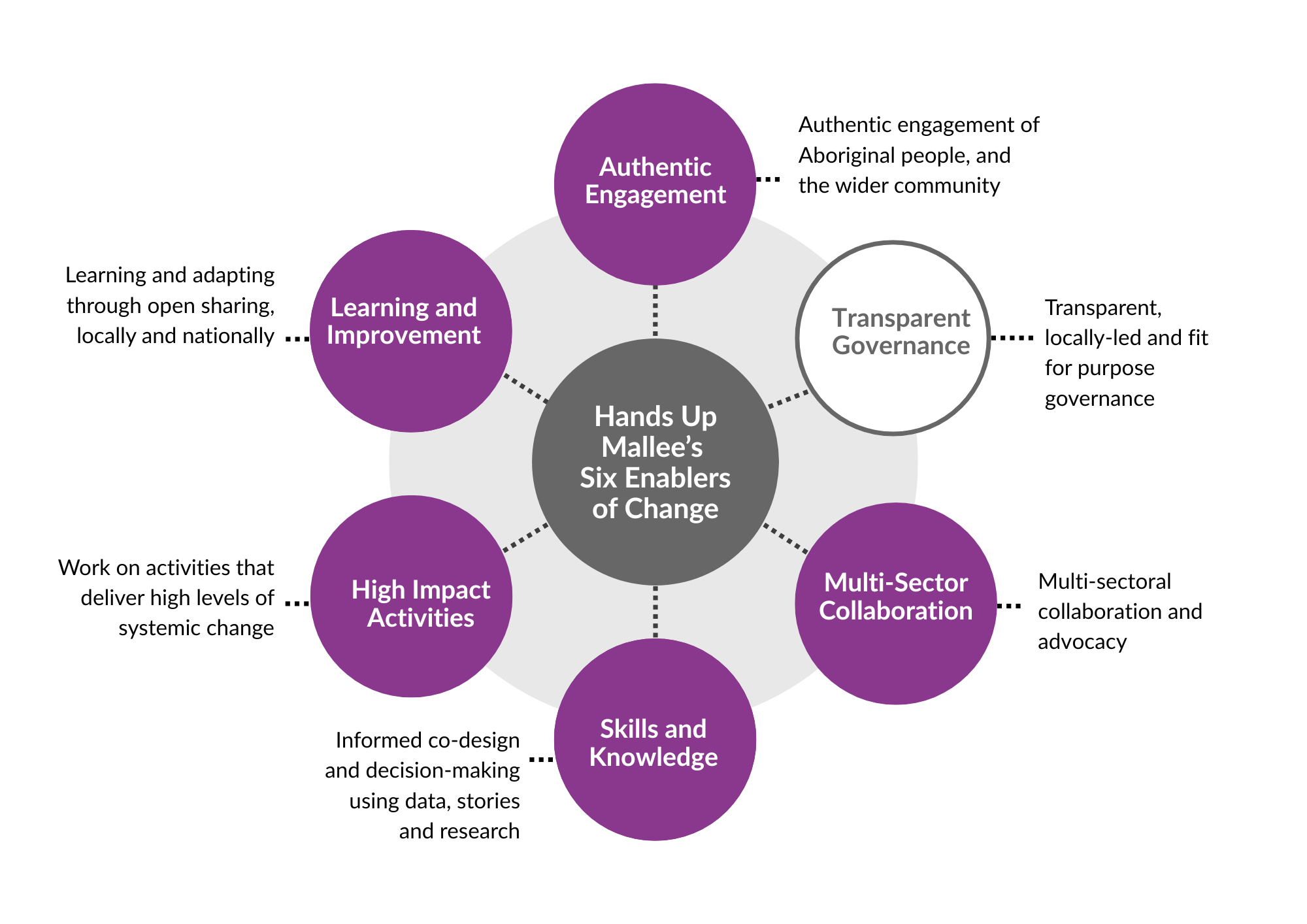 This work demonstrates Hands Up Mallee’s role as Enablers of Change
